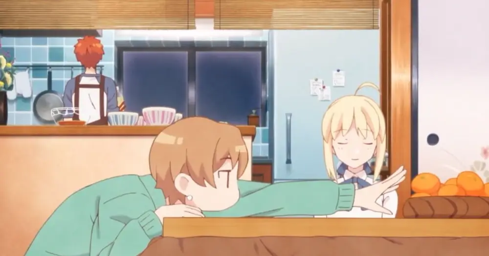 Вот автор и пытается показать нам существование другой стороны истории. Пока настоящая история рассказывает о безысходности насилия над другим, история альтернативная пытается сгладить углы попутно демонстрируя жизнь героев, совершенно, с другой стороны. Слишком много предположений о том, как выглядела бы история на наших экранах, если бы все вопросы решались на «Кухне». Понимайте, как хотите. В любом случае, повседневная жизнь разбавит мрак главных героев, а мы увидим, как будет развиваться история в совершенно другом русле. Тяжело поверить в происходящее на экране, ведь еще мгновение назад, Сэйбер рубила врагов в капусту, а Эмия старался всячески помочь ей в победе над врагом. Приятного просмотра!