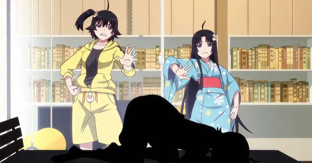 После пробуждения герой пообещал набрать Карэн воды в ванную, чтобы после пробежки она сразу ополоснулась - но что он, что Цукихи - решили занять тёплое место сами. И по итогу спора так и решили - принять ванну вместе, однако кое-что смутило Арараги. Ведь почему-то зеркало в ванной отражало только его младшую сестру, но не его...